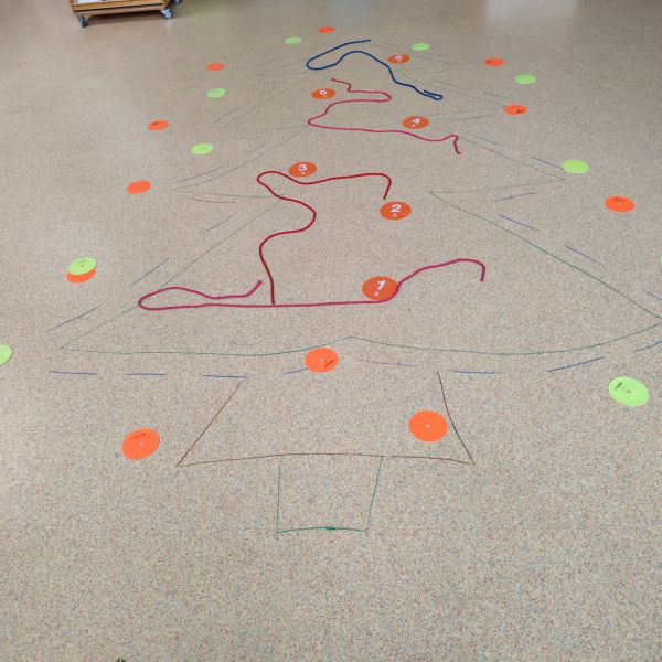 Ook de beweegbaan in de hal is geheel in Kerstthema.